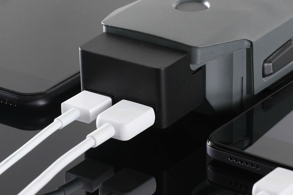 Mavic Battery to Power Bank Adaptor – адаптер для заряда от интеллектуальной батареи Mavic Intelligent Flight Battery квадрокоптера DJI Mavic мобильных устройств, таких как смартфон или планшет.