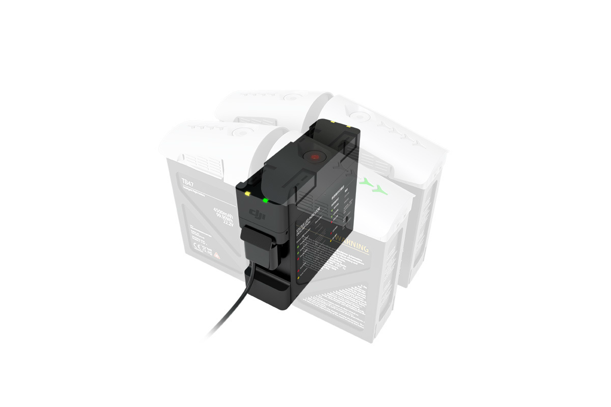 Концентратор представляет комплексное решение, позволяющее одновременно заряжать четыре батареи, что особенно актуально для любителей непрерывных длительных полетов. Небольшое устройство, работающее со стандартным зарядным устройством и проводом Inspire, автоматически выбирает батарею с максимальным оставшимся зарядом, заряжает ее и переключается к следующему аккумулятору. Весь процесс и статус батарей отражается на индикаторах хаба.