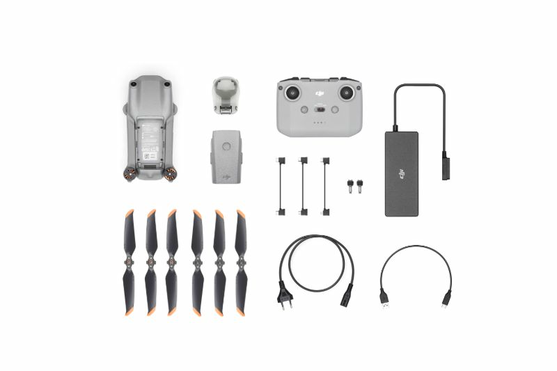 Зарядное устройство для батареи DJI Air 2S – 1 шт. Кабель питания переменного тока – 1 шт. Малошумные пропеллеры (пара) – 3 шт.