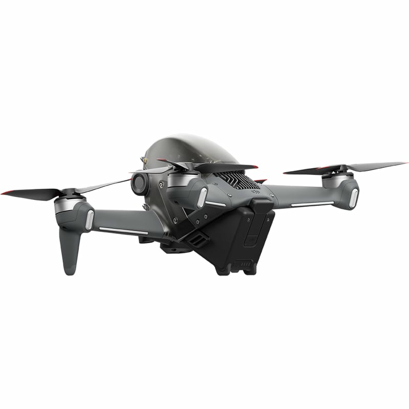 Изящный аэродинамический дрон DJI FPV обеспечивает мощную тягу, длительное время работы и отличное сопротивление ветру, что делает устройство не только визуально эстетичным, но и невероятно эффективным.