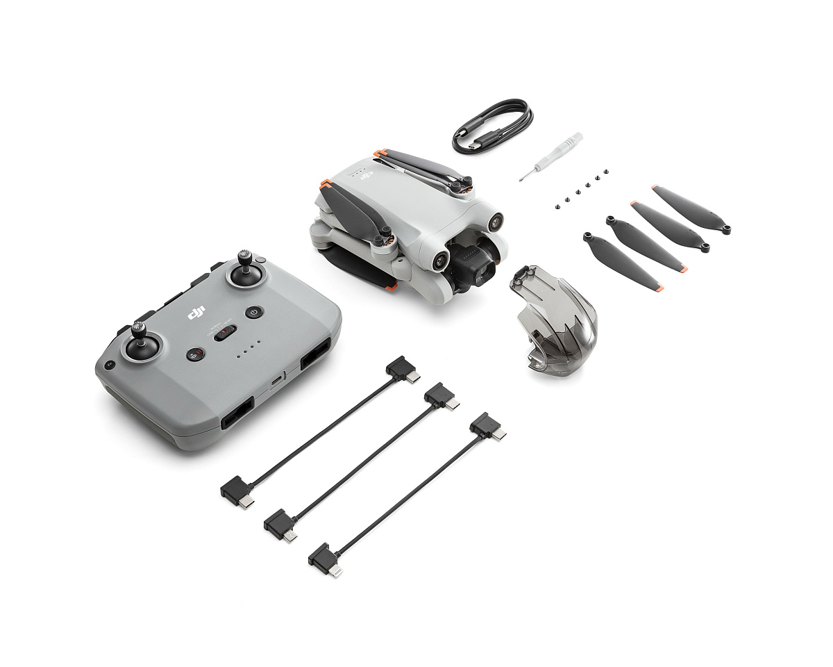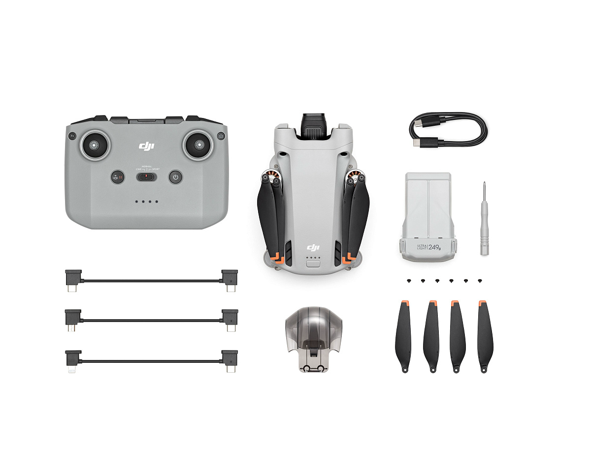 Квадрокоптер DJI Mini 3 Pro – 1 шт. Пульт дистанционного управления DJI RC-N1 – 1 шт. Кабель для пульта DJI RC-N1 (с разъемом USB Type-C) – 1 шт.