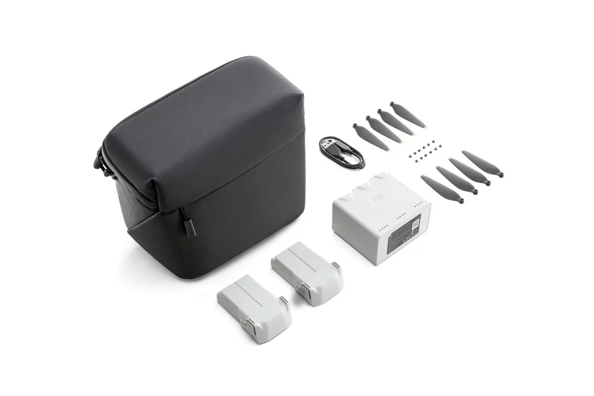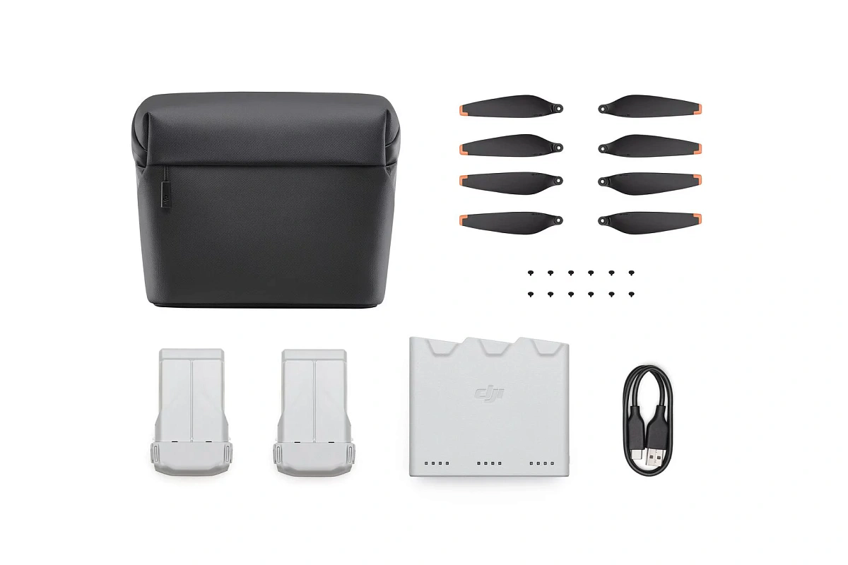 DJI Mini 3 Pro/Mini 4 Pro Fly More Kit Plus включает в себя две интеллектуальные летные батареи Plus, двухсторонний зарядный концентратор, кабель для передачи данных, наплечную сумку, запасные винты и винты, обеспечивая всестороннюю поддержку для вашей аэрофотосъемки по лучшей цене, чем покупка отдельно.