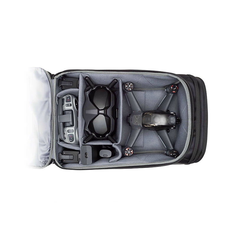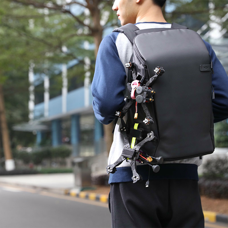 Рюкзак DJI Goggles Carry More Backpack имеет много места и перегородки, которые позволяют настроить внутренние отсеки для удобства хранения и транспортировки квадрокоптера DJI FPV Drone и аксессуаров