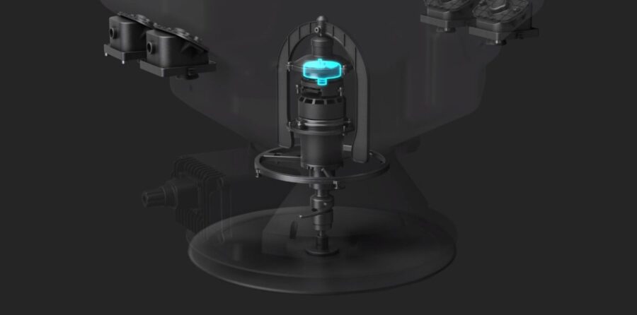 Agras T10 имеет конструкцию с четырьмя форсунками с производительностью до 2,4 литров в минуту. Двухканальный соленоидный расходомер управляет форсунками для равномерного распыления и точного контроля объема, что очень важно при распределении пестицидов.