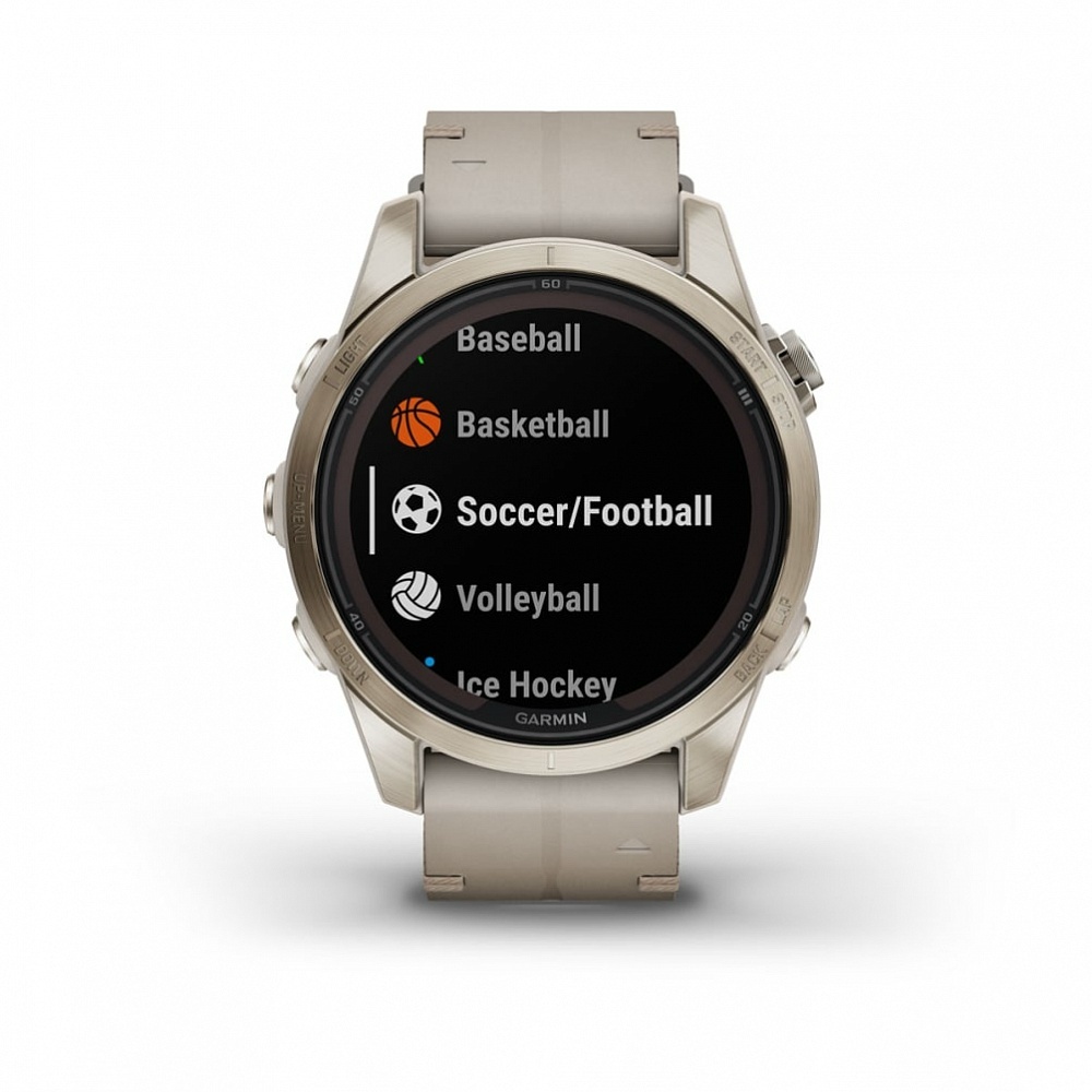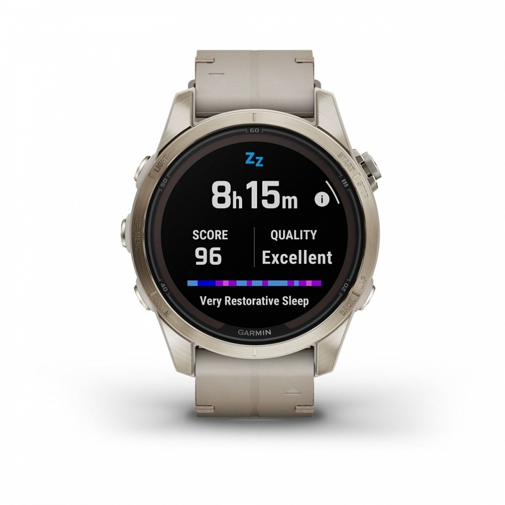 Главная » Курильск » Каталог товаров » Умные часы Garmin » Fenix pro » Умные часы Garmin Fenix 7S Pro Sapphire Solar золотистый корпус с кожаным ремешком цвета известняка