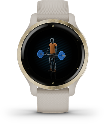 Часы включают предзагруженные анимированные тренировки (кардио, силовые, йога, пилатес и высокоинтенсивные интервальные тренировки (HIIT)). Можно загрузить дополнительные тренировки из приложения Garmin Connect.