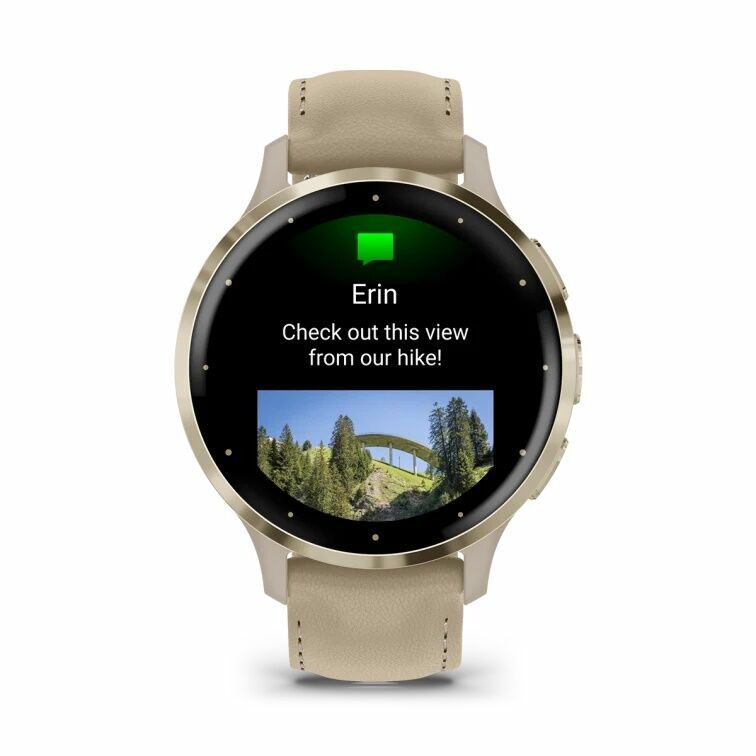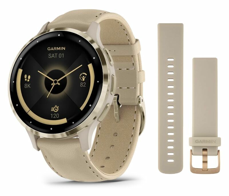 Venu 3S цвета французский серый с кожаным ремешком с золотистым безелем |