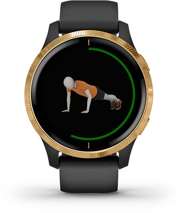 Вам больше не придется искать видеоролики или тренеров для демонстрации упражнений. Часы включают понятные анимированные кардиотренировки, силовые тренировки, йогу и пилатес, которые можно просматривать прямо на экране устройства. Вы можете использовать предзагруженные тренировки или загружать дополнительные данные из онлайнового сообщества Garmin Connect.