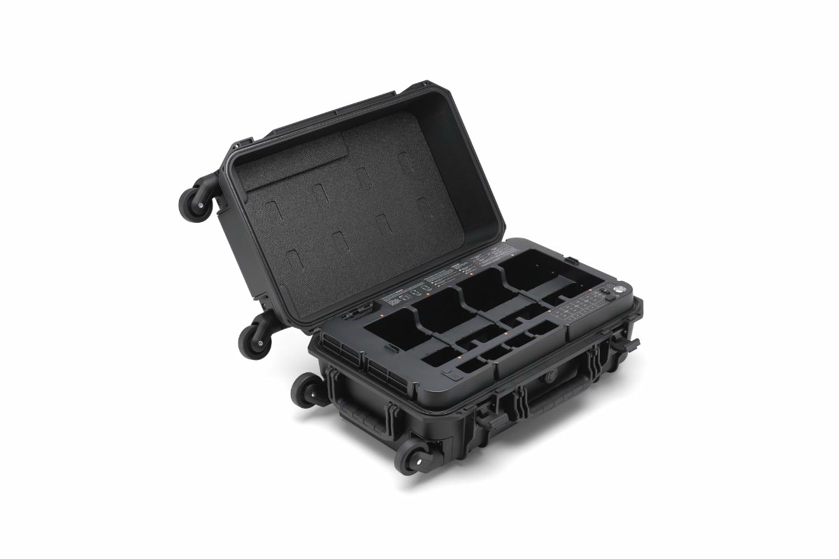 Аккумуляторная станция — это универсальное решение для зарядки, хранения и транспортировки аккумуляторов. Новый режим хранения и режим готовности к полету повышают эффективность зарядки и продлевают срок службы аккумулятора, а новые колеса, вращающиеся на 360°, облегчают транспортировку. Аккумуляторная станция оснащена восемью аккумуляторными портами TB65, четырьмя аккумуляторными портами WB37, одним портом обслуживания USB-C, одним портом зарядки USB-C и одним портом зарядки USB-A. Она может одновременно заряжать до двух аккумуляторов TB65 и одного аккумулятора WB37