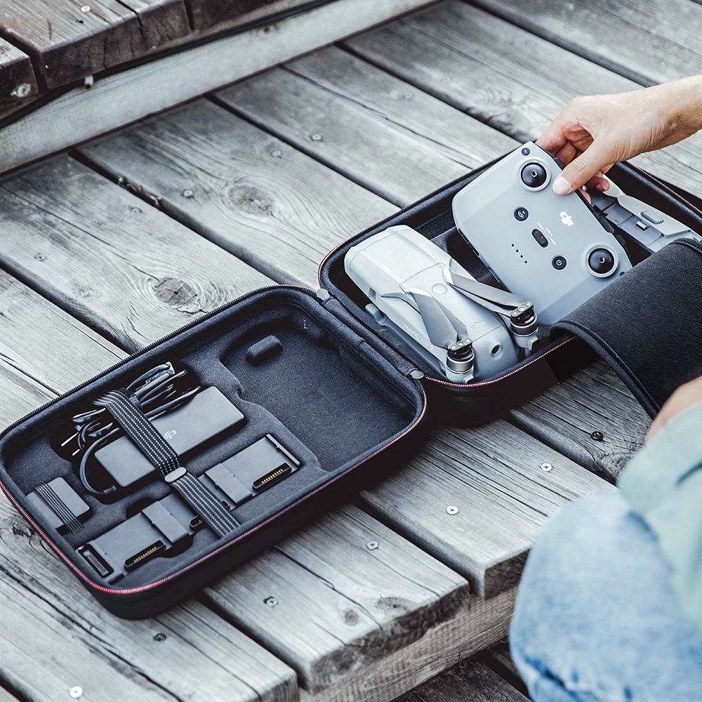 Защитный кейс PGYTECH Carrying case for Mavic Air 2 P-16A-030 может уместить квадрокоптер Mavic Air 2, пульт дистанционного управления, 2 доп. аккумулятора, зарядное устройство, хаб, защитный подвес, пропеллеры и др. Продуманная внутренняя конструкция позволяет использовать каждый свободный сантиметр. Благодаря ремню можно держать кейс в руках для более удобной транспортировки. Также стоит отметить, что кейс водонепроницаемый и хорошо защищен от ударов.